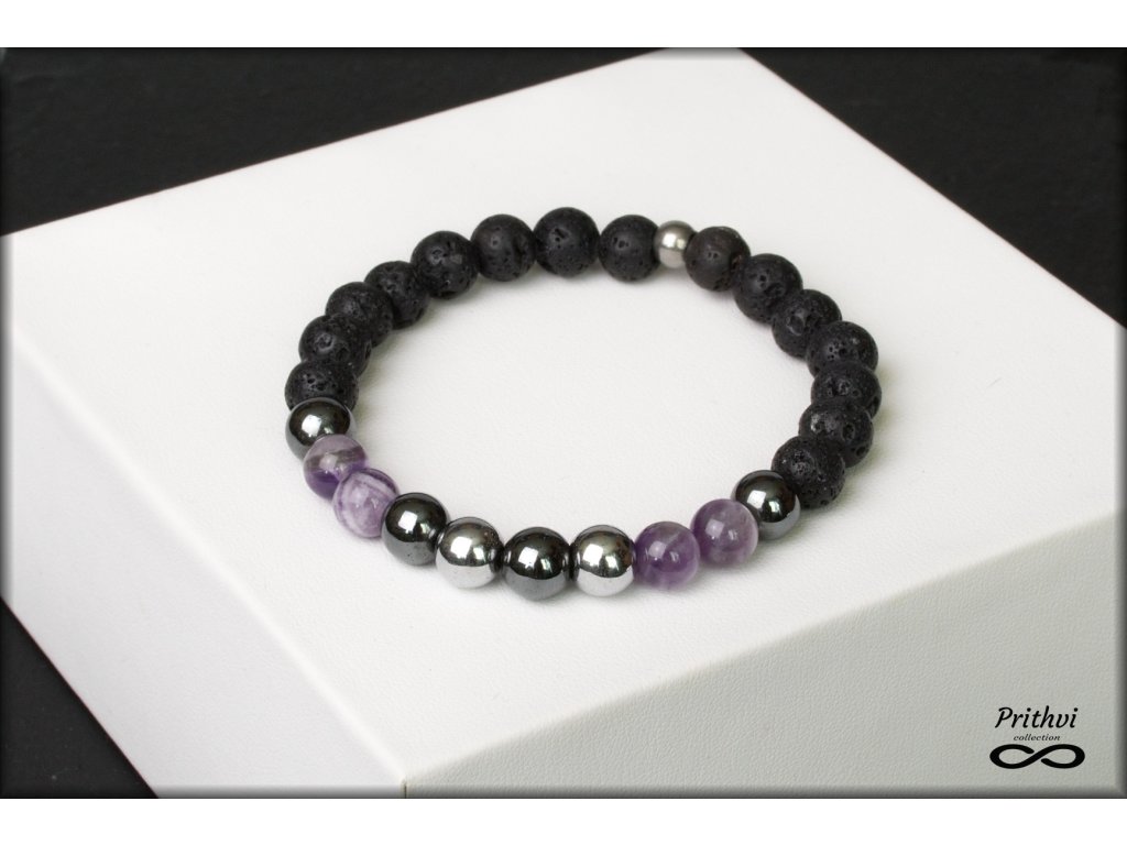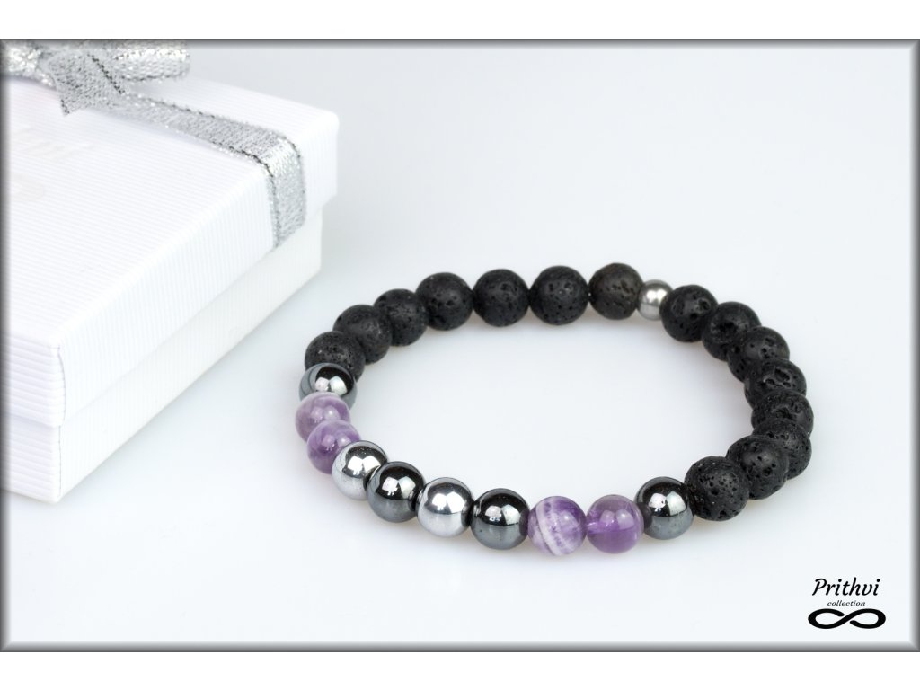 Lávový kameň 8mm, ametyst 8mm, hematit čierny 8mm, hematit strieborný 8mm