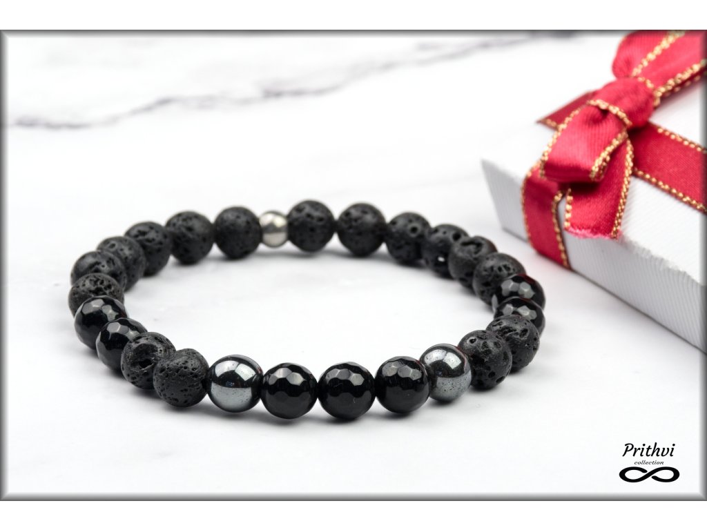 Sardonyx 8mm, lávový kameň 8mm, hematit 8mm, chirurgická oceľ